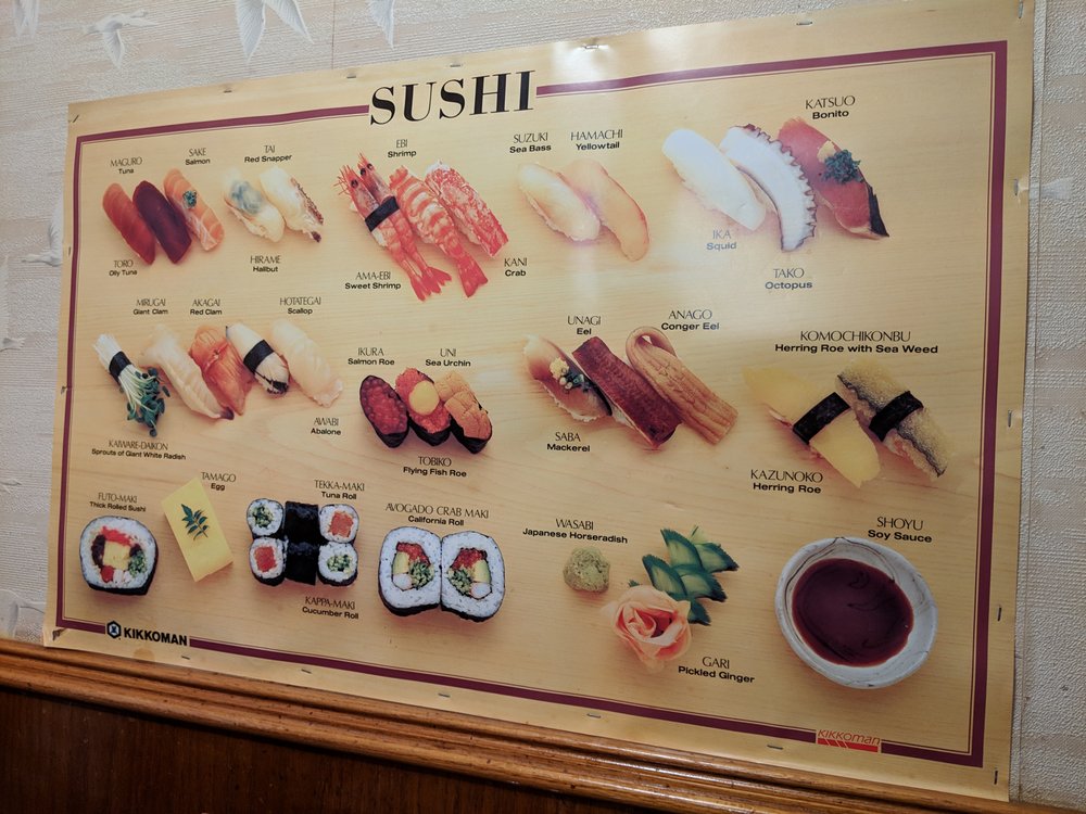Sushi: tuna roll ( pcs) tuna ( pc) yellow tail ( pe) albacore ( pc) salmon ( pc) ikura ( pc) tobiko ( pc) sashimi: tuna, salmon, white fish, surf clam, and yellow tai